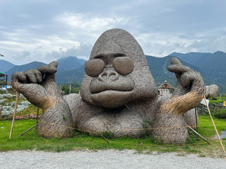 Once we finished dessert, the two of us crossed into southern Hualien to see the straw sculptures at the Fuli Sea of Flowers Scenic Area (which were inexplicably gorilla-centric). Some of the sculptures were a bit nightmare-inducing, but others were pretty cute. After we'd wandered for a little while, we scootered north, then through the Yuchang Tunnel to cross back into Taitung.